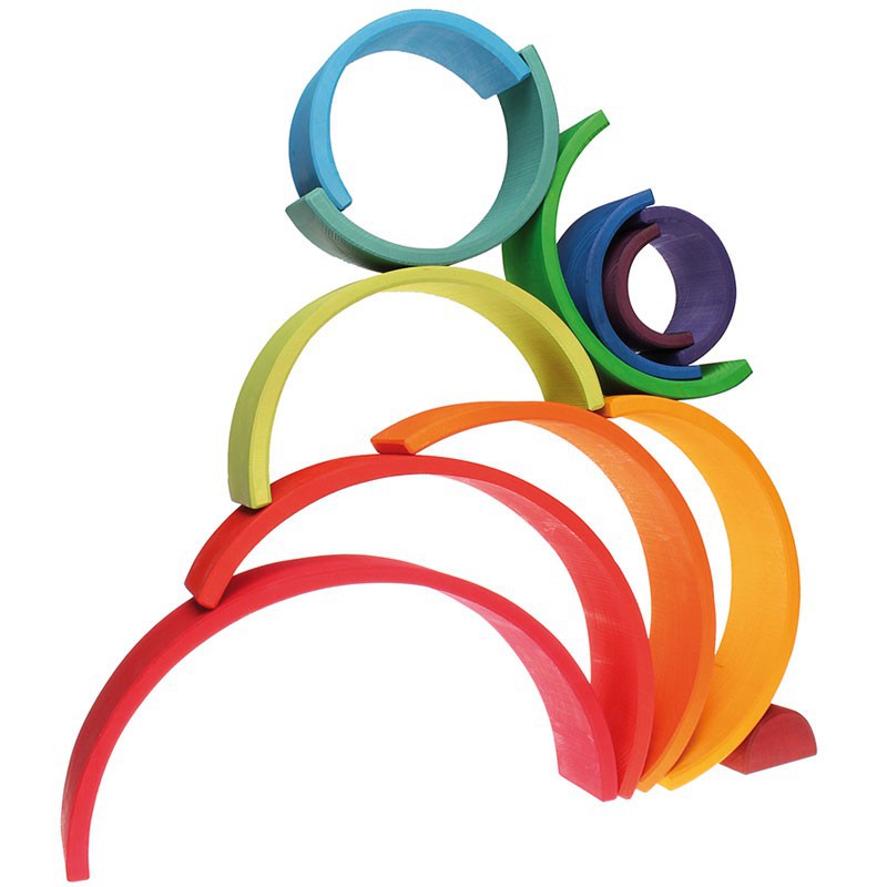 El arcoíris Waldorf es uno de los juguetes que consideramos más completos. Deja libre la imaginación, es artesanal (lo que lo hace tremendamente sensorial) y puede acompañarnos a lo largo de los años. Con él aprenden a diferenciar formas, colores, favorecen la psicomotricidad, ganan destreza y coordinación. Es un juego evolutivo que los hace ir comprendiendo conceptos tales como el equilibrio, la simetría. El arcoíris además invita a crear escenarios, a levantar grandes construcciones que les hará usar la lógica y a planificar la estructura. Y además es un juguete que podemos usar en familia.